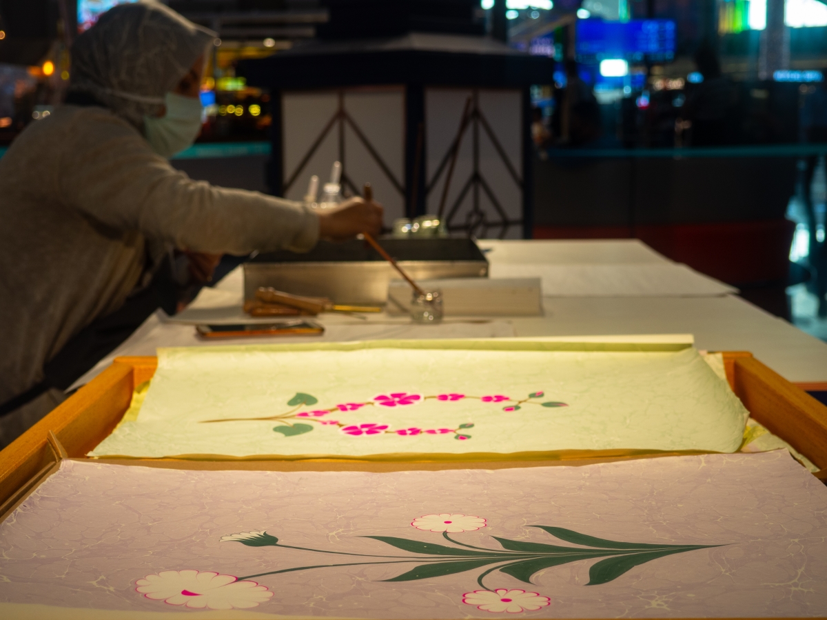 Throughout Ramadan, the art of water marbling was available for passengers as part of the different artistic activities held in the international departure area at Istanbul Airport.